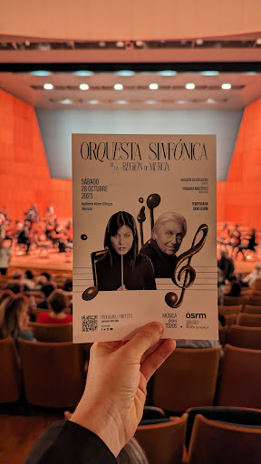 The concerts we have enjoyed at this spectacular auditorium have made my life in Murcia even more special. The winter season features solo performers with either local orchestras or international orchestras and guest international conductors. We were delighted to enjoy a piano concerto by Schumann featuring Judith Jaúregi and the OSCM ( from Murcia) performing Tchaikovsky's" La Pathetique" and Asier Polo playing an Elgar concierto for cello with the OSRM and some of Britten"s "Peter Grimes" interludes. Such heart-rendering pieces, for me especially the cello and the Schumann. Tchaikovsky never fails to stir up an audience! Some friends attended the controversial version of "West Side Story" this season too. Like Marmite, some loved it and some were not so impressed. It is easy to book tickets online. The staff at reception are very helpful if there are any problems. It is a very comfortable modern venue which you can enjoy at very reasonable prices. Two bonus tips: don't miss the beautiful silk sash trees outside the auditorium but do try to avoid the parking attendants. There is plenty of free parking right outside the venue but get there a little early because the spaces can be very awkward to...