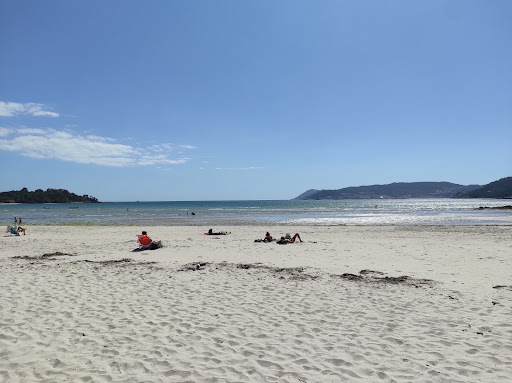 Que chulada de arenal. La he visto en marea baja y es enorme. Playa muy llanita a la que se accede por una pasarela de madera. Olvídate del coche, porque el acceso por el pueblo es solo para residentes (callejas muuuy estrechas). A patas verás las casitas de piedra, multitud de hórreos y casetas de pescadores. La playa tiene ducha, por lo que podrás quitarte la sal del baño y ver la puesta de sol mientras te comes un bocata y una...