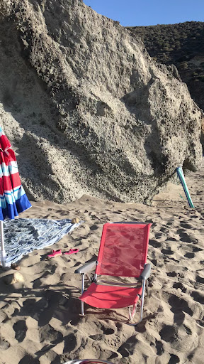 Read moreI have no idea what some of your contributors are saying. I wonder if they have visited the same place I have. You do not have to pay for parking and the beach today was 90% naturist. It’s a nice beach with plenty of space and the sand although it looks a bit dark is Ok to walk and lie on. It’s a bit disconcerting to see warning signs of riptides placed by the side of the road where you park but as long as you do not intend swimming out of your depth it’s ok. The water is very clear although today was a bit windy and the sea was a little rough and cold for June. The rock formations and the plants on the path are interesting and once you get to the top of the path the beach comes into sight and the trek feels not so bad. It’s a good naturist beach and well...