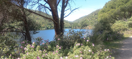 Una maravilla de ruta en Primavera, con perro. Hay parking en ambos lados, en Picadas y en San Juan, y en medio hay otro que no sé por donde se llega. Camino tortuoso de bajada en coche por puertecito sin quitamiedos hasta la presa del embalse de Picadas. Hay algunas plazas de parking, no muchas. Llevarse gorra, comida, bebida...ida y vuelta 14 kms, parando a comer son 4 horas. Mucho calor ahora que es primavera y no quiero imaginar en verano. Merece la pena el paseo. Se puede ir en bici y con niños. Hay mucha garrapata. Los perros sueltos que no son peligrosos sin problema, los que son conflictivos, por...