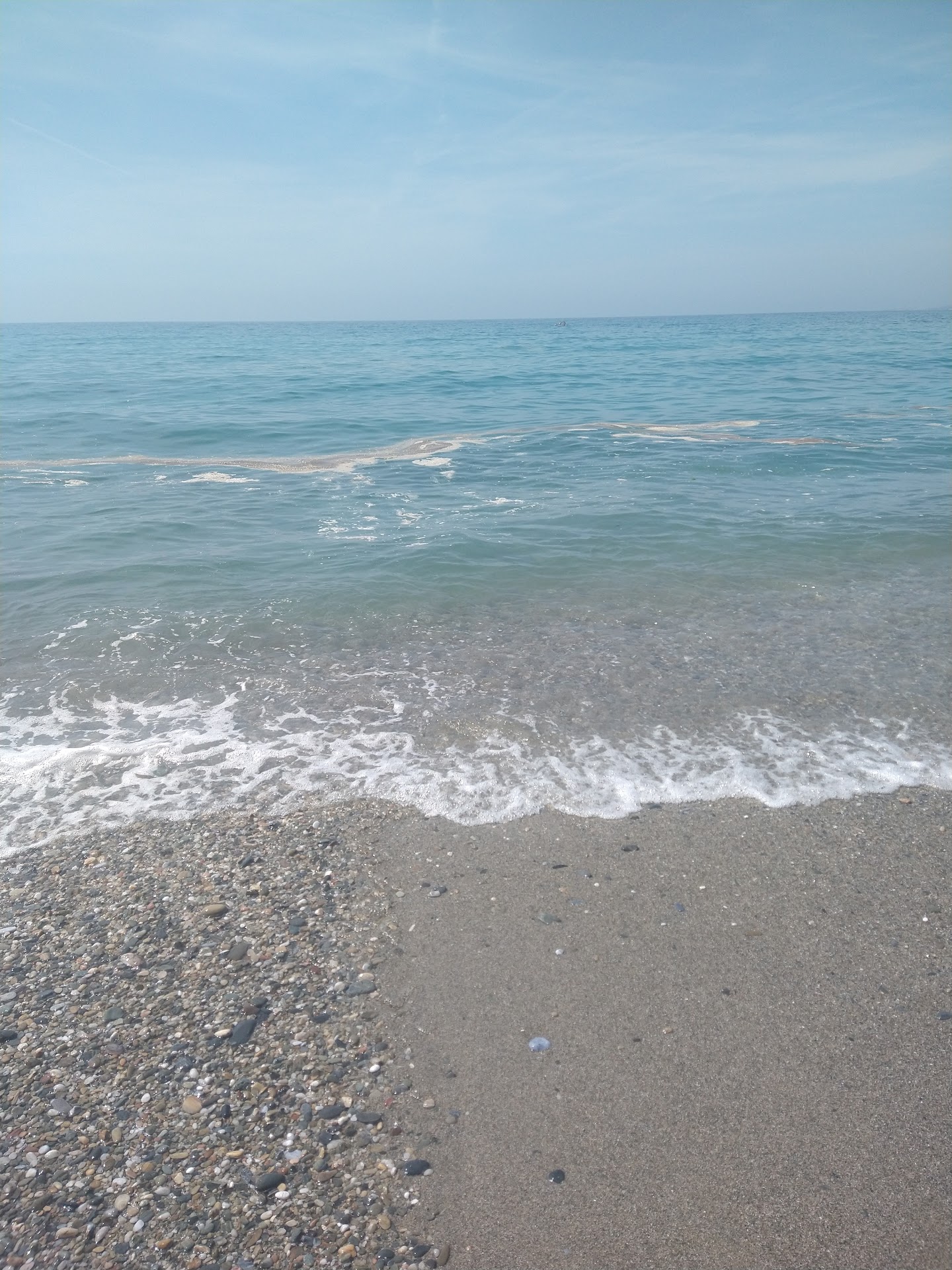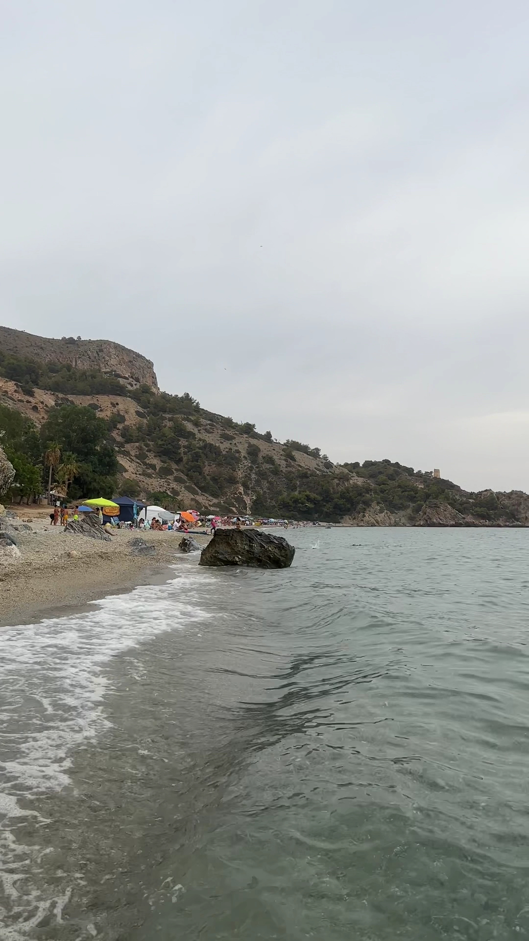 Cala del Cañuelo is a quiet, pebbled beach hidden in the cliffs near Nerja, inside the Maro-Cerro Gordo Natural Park. It has a calm, secluded feel, not too busy even in summer, and the water is strikingly clear. The beach itself is about half a mile long, edged with large rocks and backed by steep hills, giving it a more enclosed, peaceful atmosphere (it’s not a sandy beach). This is a place to explore, swim, snorkel, and enjoy the water.