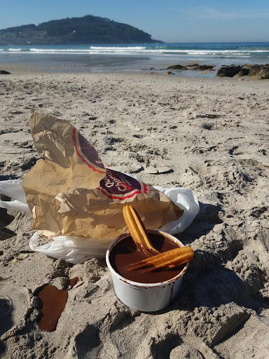 Una de las mejores playas de la zona, aunque hay que estar pendiente de las mareas, ya que con la pleamar no queda playa. Arena fina y vistas espectaculares de las Cies. Hay buenas olas, por lo que suele haber surfistas.