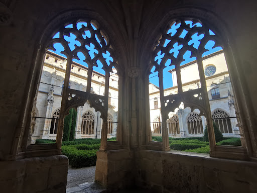 Acabamos aquí casi por casualidad, y nos pareció espectacular. Te encuentras en un pueblo, con marcado aire medieval, al que no se puede ni pasar con el coche, subes una cuesta, llena de casitas que merece la pena admirar también, y te encuentras este espectacular edificio. Da la sensación de que si pones todas las casitas del pueblo juntas, apiladas, no llega a ser un volumen tan grande como el que tiene el conjunto arquitectónico del monasterio+iglesia, etc. Muy amable y atenta la señora que recibe al público y cobra la entrada, que merece la pena pagarla. El claustro es precioso, es estilo gótico en su mayoría, como se aprecia en la foto. Existe audio-guía disponible, recomiendo llevar auriculares para conectarlos al móvil. La iglesia está muy bien conservada, aún hay frescos, pinturas y diversa policromía en la piedra, que nos enseña lo distintos que eran estos edificios hace siglos, y la riqueza cultural que hemos perdido. Una pena que solo sean visitables el claustro y la iglesia, el edificio es enorme y es como un 12% lo que se visita. La señora de la entrada nos dijo que el monasterio había sido un asilo, pero ahora da la sensación de que es material para...