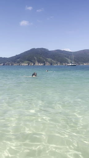 Read moreENCANTADORA playa de O Vicedo próxima al pueblo. Parece caribeña por su fina y blanca arena y agua cristalina con peces y ostras, como la similar e inmediata de Vidreiro. Bajo el muro de mampostería de piedra de una antigua industria de salazones y de exuberante vegetación. Con los montes de Bares (Mañón, A Coruña), al otro lado de la atractiva ría de O Barqueiro. Con marea baja triplica su pequeño tamaño, a pesar de su gran pendiente.