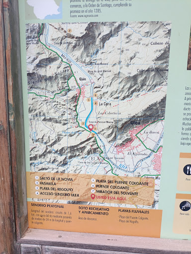Read moreEl Salto de la Novia está situado entre Ulea y Ojós en el valle de Ricote (Murcia), junto al río Segura que riega estas bellas tierras. La leyenda cuenta una historia de amor envuelve a este lugar en la que según una leyenda medieval se arrojó desde lo alto del peñasco la hija del comendador de Santiago tras conocer la muerte de su novio en la batalla. Hay otra versión que nos narra la relación amorosa de una joven cristiana con el guerrero Abent Hud, los cuales decidieron suicidarse tras el rechazo de su padre a la relación. Sea cual sea es un lugar que merece la...