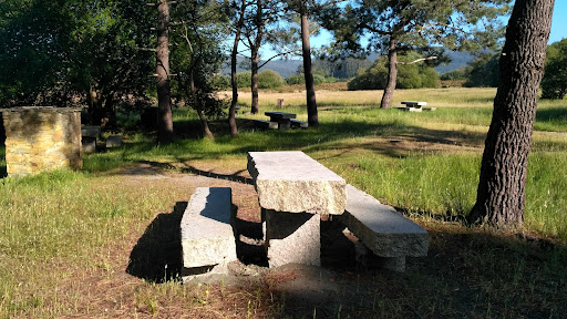 Be lli si ma! 😻 Me ha encantado! Es que lo tiene todo! Es muy bonito, tiene pinos preciosos, huele riquísimo! Tiene árboles de laurel. Es un sitio muy limpio, hay botes de basura por todos lados, así que mo hay pretexto alguno para dejarla tirada. Tiene WC, baños, aseos, etc. Tiene regaderas también. Hay mesas de madera para comer ahí, es un sitio ideal para ir de Pic nic, es un sitio para ir con amigos, familia, mascotas, etc. La playa es hermosa, tiene arena negra y blanca, hay caminos a parte del principal, para disfrutaf mientras llegas a ella. El agua es agradable, es decir, no es excesivamente fría. Es una playa bastante tranquila, ideal para tomar el sol. Hay pocas olas, y sobretodo no es tan abierta como otras, sino que es agradable estar ahí sin sentir que te lleva el viento. Es muy tranquilo todo ahí. La arena es muy finita y suave!