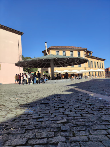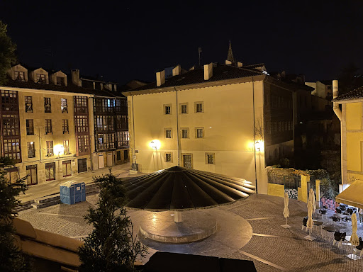 Un rincón curioso en pleno casco antiguo de Oviedo, con su peculiar paraguas gigante en el centro y terrazas alrededor. Es un buen sitio para sentarse a tomar algo, sobre todo en días soleados, pero en mi caso la experiencia fue un poco irregular. A ratos la música de algunos bares se mezclaba con la de otros y el ambiente se volvía algo caótico. Además, el servicio en la terraza donde nos sentamos fue lento, aunque amable. Me gusta que sea un lugar de encuentro para gente local y turistas, pero quizá esperaba un poco más de cuidado en la limpieza de la zona, sobre todo por la noche. Aun así, vale la pena pasar y conocerlo si estás explorando las calles cercanas a la Catedral; es de esos sitios que, aunque no sean perfectos, forman parte del carácter...