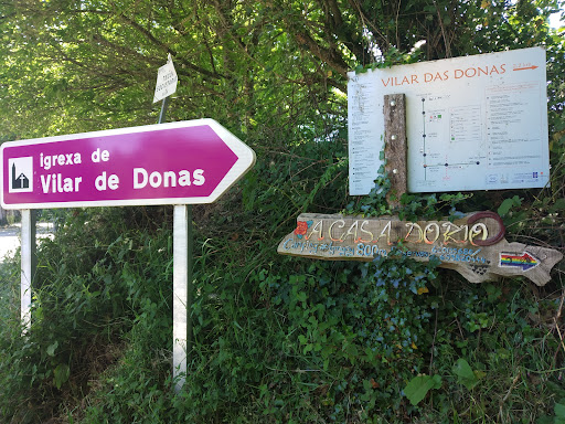 Read moreA igrexa de San Salvador de Vilar de Donas, á beira do Camiño de Santiago, pertenceu a un mosteiro fundado por dúas "donas" da familia dos Arias de Monterroso a mediados do século XII. O mosteiro recibiu abondoso privilexios do reis de Galicia Afonso IX e Fernando II. Foi precisamente durante o reinado deste, contra o ano 1230, cando se construíu a igrexa en estilo románico serodio. A planta do templo é moi semellante a de San Miguel de Breamo (Pontedeume) con tres ábsidas semicirculares nas que se abren bonitas fiestras románicas con columnas de alto fuste. A portada é unha senlleira riqueza ornamental de estilo gótico ourensán con persistencias románicas. O beiral que coroa a porta, con arquiños semicirculares, lembra as mesmas tendencias artísticas. No interior, amais das pinturas góticas da ábsida central, destacan os sepulcros dos Noguerol, Gaioso e Ulloa, entre outros. Todas estas sepulturas lémbrannos que este mosteiro foi lugar de enterramento dos cabaleiros da Orden de Santiago que finaban fóra de Galicia. Pena de que estivese pechada e sen ningún contacto pra...