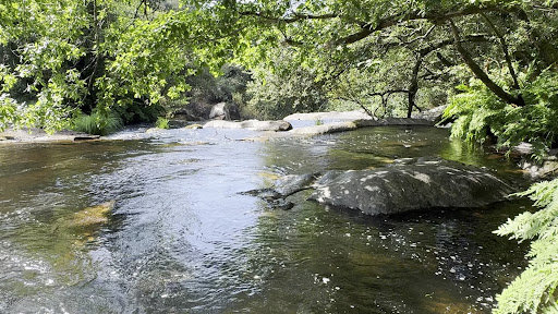 Read moreCuando llegas al cartel, junto al puente y al río Pambre... desde esa intersección, subes unos 50 mts de adoquines, otros 50 mts de piedra suelta y tierra y sobre llano,150 mts de huella con grava firme.... alcanzaras un claro despejado de maleza en el carballal, donde podrás dejar vehículo.... seguir a pie... unos 200mt por sendero y oiras el último estrechamiento del Ulla antes de unirse aguas abajo con el Pambre... cuando llegues al ruidoso estrechamiento.... desde allí en adelante será por camino con piedras y sendero, pero cada vez más piedras y pedrolo grande, a veces a cuatro patas.... verás algunos remansos o pozas... en marzo 12 ° el agua.. ideal para hormesis... yo llegue casi 1km arriba... no se cómo sigue.. muchos saltos de agua...