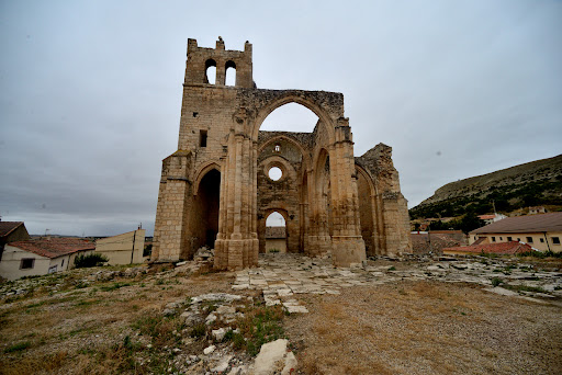 Read moreLa iglesia construida en estilo gótico, se estructuró en tres naves con varias capillas funerarias. De su estructura primigenia hoy permanecen unas ruinas consolidadas, su torre almenada aun conserva una escalera de caracol, la portada diseñada con arco apuntado y decorada con varias arquivoltas, fragmentos de muros y algunos pilares con arcos; también conserva parte del pavimento pétreo. Con nieve es...