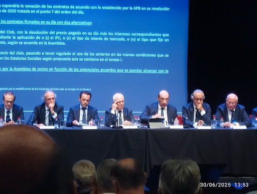 These photos are from what was probably the most historic and infamous meeting of * Club de Mar Mallorca *, where the board, presided over by Borja de la Rosa and Antonio Arrom, but actually managed by Mr Yacobi, a lawyer who seems to have been hired as a "trouble-shooter", advised association members that they were probably never going to get their rights back to sell their moorings at market price, or receive income from renting their moorings: members have patiently waited since 2019 since investing considerable sums in the renovation of the Club and paying the Port Authority to extend their concession to 2044, only to find out that the rug has been pulled from under their feet. The Club's board will continue to enjoy income through their partner company, Compañia Constructora y Explotador de Puertos SA (AKA PUDESA), in what can only be considered a coup de etat by the board and port authority led by...