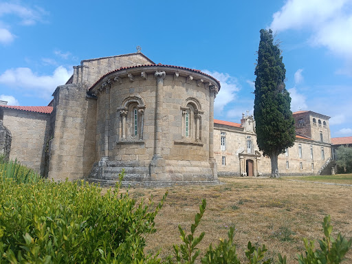 Está en funcionamiento. Las monjas venden tortas de almendras y diferentes pastas. Ver el claustro y la iglesia cuesta solo un euro. El resto del edificio es de clausura y no se puede visitar. Esto es lo que he encontrado sobre este monasterio en la página oficial de la Ribeira: También conocido como Monasterio de las Bernardas, es el único que todavía conserva vida monacal en toda la Ribeira Sacra. Se funda en el siglo X como monasterio dúplice y así permanece hasta que en el siglo XII son suprimidos este tipo de monasterios. En el año 1175 se anexiona al Císter y se inicia una nueva etapa de renovación espiritual y económica. El monasterio conserva la iglesia románica del siglo XII. Se trata de uno de los ejemplares de arte románico más interesantes de Ribeira Sacra. Tiene la cabecera semicircular con interesante iconografía. Fue construida antes de la anexión del monasterio al Císter. La nave es rectangular. Está cubierta con un artesonado de tradición mudéjar del siglo XVI. En el siglo XVIII, se le anexiona en el muro sur una capilla dedicada a San Roque. En el interior, destacamos en la cabecera el refuerzo de la bóveda de cascarón con dos nervios que además sirve como elemento decorativo. Presenta variedad de capiteles con decoración vegetal, zoomorfa e historiada. A la izquierda podemos ver en primer lugar, un capitel en el que aparecen representado dos grifos (animales que se toman de la mitología oriental con el cuerpo de león y cabeza de águila) que protegen a dos bueyes ungidos. Algunos autores dicen que tenemos representada la doble naturaleza de Cristo, la humana en la figura de los bueyes y la divina, en la de los grifos. Seguidamente, un capitel con hoja de acanto del que asoma un cachorro de león. A la derecha, vemos en primer lugar, un capitel que representa a Sansón dominando a dos leones. A continuación, un personaje que tiene alas con dos leones humillados a sus pies, que interpretan algunos autores como Daniel en el foso de los leones. A ambos lados del tramo recto del ábside, se pueden ver dos sepulcros de tipología gótica. En el exterior de la cabecera, tenemos una variada colección de canecillos con interesante iconografía. Destacamos en el lado norte, los dedicados a la juglaría con la representación del trovador, el juglar y la soldadera. Están colocados jerárquicamente y el juglar perdió su cabeza, ya que eran imágenes que se mutilaban con frecuencia ya que consideraban indecoroso e inmoral actuar a cambio de dinero. En el muro sur, destacamos al basilisco, animal híbrido del que San Bernardo decía que con sólo mirarlo uno moría. La fachada del monasterio es barroca del siglo XVIII, muy sencilla siguiendo las pautas del Císter. El claustro es renacentista del siglo XVI, con el primer cuerpo realizado en piedra y el segundo en madera. Las monjas guardan en el interior del monasterio una imagen de una Virgen con el Niño, románica de finales del siglo XII o...