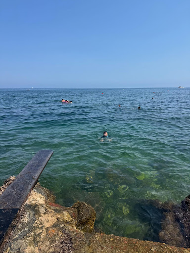 Great rocky beach which is great for snorkelling with the opportunity to see lots of fish. There's a diving board and steps to get out of the sea. Sea shoes are a must to go in the sea as the rocks are super sharp. There's a few restaurants around and a lifeguard in the summer months although best to visit outside of peak season as it...