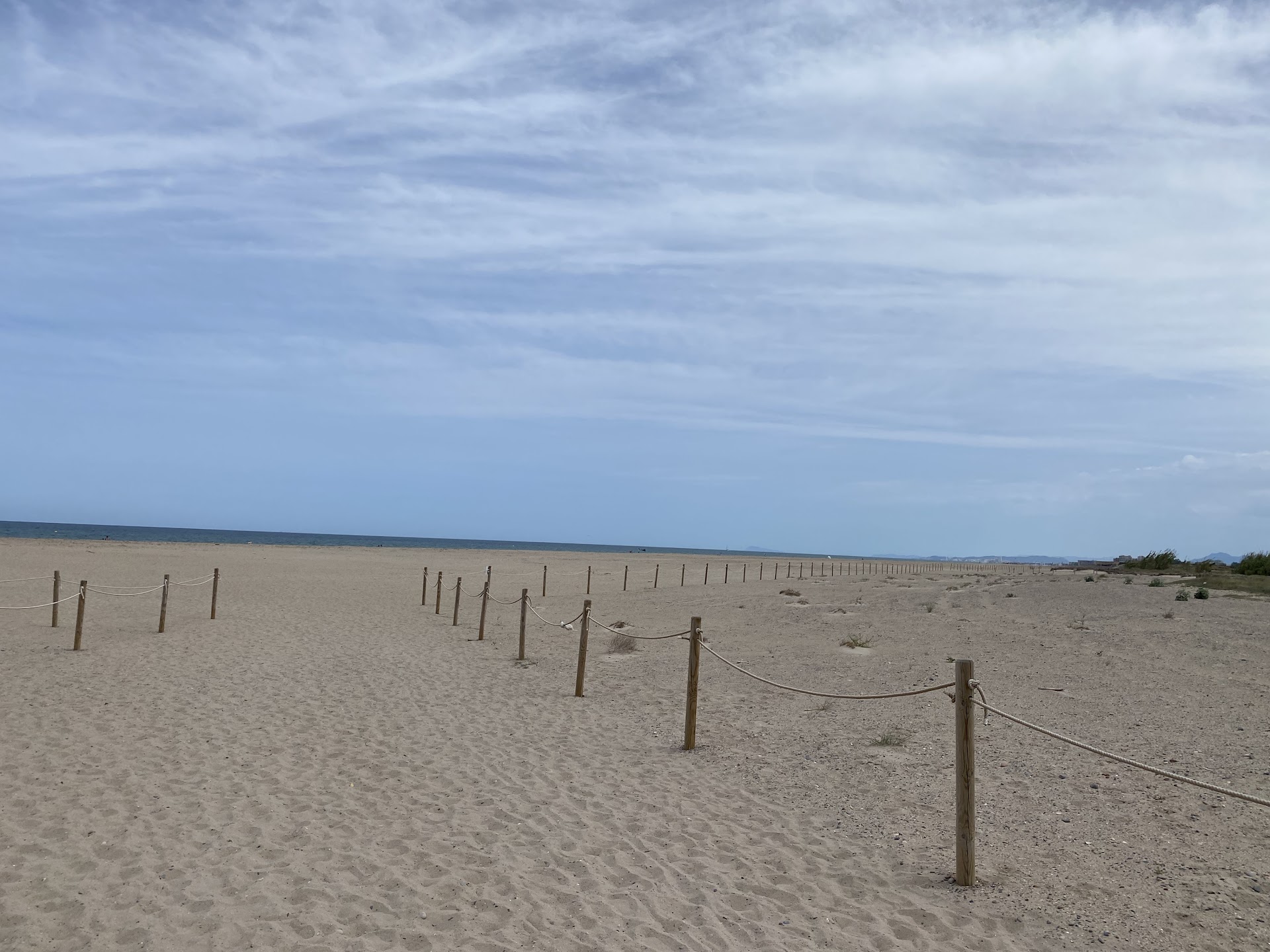 Playa naturista/nudista. Esta bastante linda, es de arena gruesa tipo piedritas muy cómoda. El agua agradable, baja y calma. Poca gente en junio, no todos hacen nudismo, es tranquila, no vendedores, pasa la policía a controlar. Hay ducha y lavapies. No hay postes para dejar bicicletas (nosotros las entramos a la playa y dejamos en unos palos)