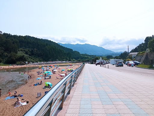 Lo mejor: -Bien comunicada por carretera y parking público. -El río, aunque no muy caudaloso, sin duda le da otra dimensión a la playa ya que te permite bañarte, a los críos les da mucho juego, y con la subida de mareas se forman pequeñas corrientes hacia dentro que permite jugar con hinchables o tablas de recreo acuático. -Arena buena. -Servicios cómo: duchas públicas en la playa, restaurante al lado (también ofrece bocatas, hamburguesas, y cosas más baratas), socorristas y un paseo que va por la orilla de la playa y el río. -La sensación de playa salvaje con el monte al lado y el río. -Hay pequeños prados al lado de la playa por si te aburres de arena y agua. -Las huellas de dinosaurio que hay cerca de la playa (500 metros más o menos), a las que accedes por el camino que hay en la zona este de la playa- te permite romper la rutina de la playa, y a los críos les encantan.