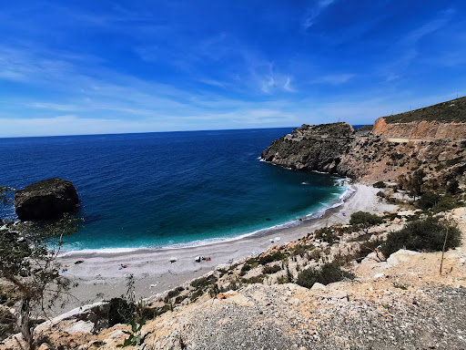 No es accesible para personas con movilidad reducida a pesar de que el parking tiene 3 plazas reservadas para personas con movilidad reducida. No hay duchas ni infraestructuras tampoco puesto de socorro o fuente de agua potable. Es un paraje increíble, por su belleza y encanto, de obligada visita si vas a Granada. La primera vez que fui, me enamore, el agua azul esmeralda, bancos de peces, erizos de mar, pulpos......si vas, cuidala y no tires residuos de ningún tipo, tienes a tu disposición 6 contenedores de basura, los residuos son tuyos, no los compartas. Acceso al agua mediante cantos rodados de calibre medio, el ruido del oleaje contra los cantos al moverlos es increíble. Mejor llevar escarpines para no hacerte daño al entrar y al salir, no hay mucho oleaje porque tiene forma de herradura. Puedes ver a los que están zumbados, como escalan por el acantilado para luego tirarse.... bastante peligroso y descabellado. El agua tiene la temperatura ideal. El aparcamiento es gratuito y libre por lo que no está vigilado pero hay una persona con un chaleco identificativo que "vela de manera altruista" el pequeño parking para que no roben en los coches y tu le das la voluntad, si quieres. Ahora hay posibilidad de alquilar piraguas autovaciables en la propia cala y hacer excursiones guiadas. Hay siempre mucha gente, si quieres aparcar en el parking tienes que madrugar y estar antes de las 10:00 de la mañana, en caso contrario tendrás que dejar el vehículo estacionado en zona de multa o en el mirador del lado contrario al parking donde te juegas la vida al cruzar los 2 carriles y donde los coches están absolutamente solos a merced de...