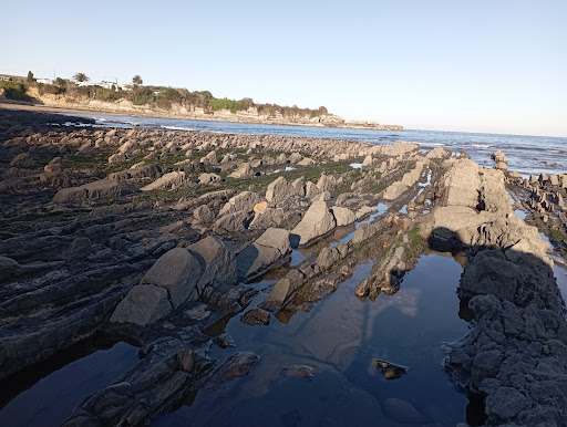 Lo bonito las formaciones rocososas pero el acceso con coche bastante penoso asi en plan un carril y poco aparcamiento gratuito luego bajas a la playa y no es muy grande esta llena de algas y el agua como embarrada da un poco de asco con vistas a los barcos cargueros e industrias al fondo luego estaba la playa llena de minibolitas de plastico lo de que tiene piedras para mi es lo de menos la parte buena que tiene unas formaciones rocosas curiosas y creo k tiene menos oleajes yo no me meti ni la cabeza del asquillo jaja no obstante para dar un pasein es una playa cuqui no se otros dias como estara.....el olor a algas me gusto y como zona Asturiana verde y con las montañas en la lejania...también es relajante si te sientas...