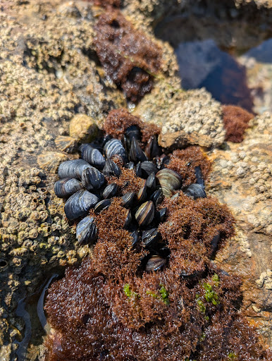 La ermita es una curiosidad, también hay una bajada a las piedras desde la ermita que permiten ver charcos de agua de mar con algas que parecen césped, gambas, mejillones y cangrejitos.