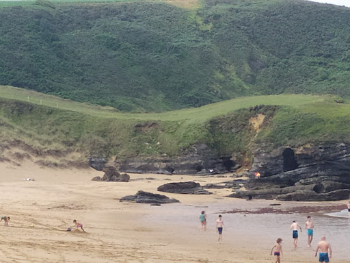 Read moreUna playa súper chula, salvaje. El agua tiene muchas algas, eso sí. Tiene zona de rocas donde puedes ver cangrejos. Nosotros llegamos el lunes a las 9'30 y no había nadie. Luego cerca del mediodía empezaron a llegar más personas y a eso de las 5 otra tanda más. Nos hizo buen día y se podía estar en el agua. Pasamos el día en la playa la mar de a gusto. El aparcamiento es amplio, te cobran 3€. El señor del parking muy majo. Es una propiedad privada por eso cobran por dejarte dejar el coche allí, pero está en la misma playa y es súper cómodo. También hay socorrista y un chiringuito donde poder comprar bebida fría. Recomendable sombrilla y crema solar, aunque esté nublado!! Incluso chaqueta. Aquí nos hemos acostumbrado a llevarla siempre encima y no es ninguna locura aunque veas el sol. En cuestión de una hora puede cambiar el panorama. Está muy cerca del faro de Cabo de Peñas, por lo que recomendamos ir . Una pasada de acantilados. Hay 2 aparcamientos, uno en el Centro Marino (al que solo puedes acceder con cita previa) y otro al final, junto al acantilado, con un bar. Tiene varios miradores. Es zona de avistamientos de ballenas y delfines ( imagino que mejor con prismáticos) Foto obligada con...