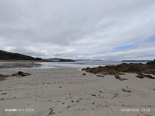 Fue llegar y enamorarme del sitio, buen acceso a la playa, ducha con buena potencia de agua, WC público y zona de picnic con mesas, parque infantil y aparcamiento con zona de discapacitados. La arena como harina de trigo y las aguas cristalinas, si buscas y caminas un poco hay más cálidas y es un sitio perfecto para scuba con mar en calma. Tiene muy buenas vistas, playa sin humo 🚭 el pueblo de Corme esta a 3 min. Sitio mágico. Solo comentar que la última vez que fui vi el área de Campin, area estacionamiento, accesos a playa y caminos interior playa muy descuidados, sin atención, sucios y en pleno verano. Mal por la calidad de gente que acude alli y mal por los servicios públicos/...