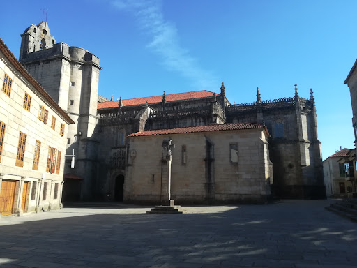 Read moreFoi construída no século XVI polo Gremio de Mareantes, no lugar doutra igrexa románica dos séculos XII-XIII, en ruínas, da que se conserva unha talla dun Pantocrator policromado. O deseño da actual basílica é obra de Diego Gil e Juan de los Cuetos. A nave norte e a fermosa fachada principal, de estilo Plateresco, é obra de Cornelis de Holanda e Jõao Nobre, entre 1541 e 1548, e está adicada á Virxe María. Tamén é obra de Cornelis de Holanda a Contraportada, unha das obras máis orixinais con corenta relevos de escenas bíblicas, emblemas, figuras e alegorías. A nave central, con bóveda de crucería estrelada, ten gravada a data de finalización en 1559. As bóvedas rematan en dezasete craves con motivos decorativos e unha cun escudo dos Fonseca. O Antigo retablo do altar maior do século XVI, contratado polos mareantes da Confraría do Corpo Santo a Jácome de Prado, exhíbese no Museo Provincial. O que agora vemos, do século XIX, foi realizado polo tallista santiagués Maximino Magariños quen tamén fixo o púlpito e as estacións do Vía Crucis. Na capela dá Virxe do Carme, patroa dous mariñeiros, podemos ler a inscrición gótica en pedra: "OS DO CERCO: DE YOAN NETO E YOAN DE COLLON FEZERON ESTA CAPELA”. A Porta do lado sur coa Virxe co Neno en brazos no centro, San Miguel á súa dereita e San Pedro Telmo á súa esquerda, ambos los dous patróns das confrarías de mariñeiros e mareantes con sede nesta parroquia, é obra de Diego Gil ao redor de 1539. A torre das campás ten un friso decorado coas figuras de Xesús e os doce apóstolos, representación de Últíma Cea, e na base da torre a Virxe de Quitapesares, representada como unha muller vestida de sol coa lúa aos seus pés e unha coroa de estrelas sobre a súa cabeza, protectora dá cidade, reprodución doutra máis antiga que se veneraba nunha ermida de Os Praceres. Na crista da fachada principal do templo, de elaborado encaixe en pedra, represéntanse remeiros e pescadores recollendo as súas redes. E nas cristas do lado sur están representados, en mandorlas, Xesús cos apóstolos e profetas, en total dezasete imaxes. Nos remates e esquinas to tellado, figuras de Hércules e numerosas gárgolas. No parte exterior da ábsida vemos o escudo de Alonso de Fonseca, arcebispo de Santiago, e debaixo unha imaxe da Virxe da O, patroa...