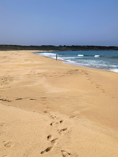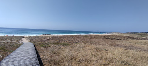 Playa fantástica de arena blanca y limpia como ninguna. Apenas encontramos 2 trozos de corcho blanco de pescadores y poco más. El agua turquesa, transparente y fría como un demonio pero merece la pena meterse en ese oleaje bravo que te da emociones fuertes y diversión total. Sólo recomendable si tienes experiencia en este tipo de olas. A los niños mejor llévalos a otra playa en las rías o vigílalos muy de cerca. El aparcamiento, al igual que la playa, está muy natural. Tienes 3 accesos principales con el coche y luego la pasarela de madera desde el pueblo y que recorre toda la playa. No busques más comodidades que la naturaleza porque no hay duchas, ni chiringuitos, ni baños,ni nada parecido. Parece que en tiempos hubo un recinto que tenía un bar pero eso ahora está cerrado. La hemos visitado en junio y estábamos no más de 10 personas en toda la...