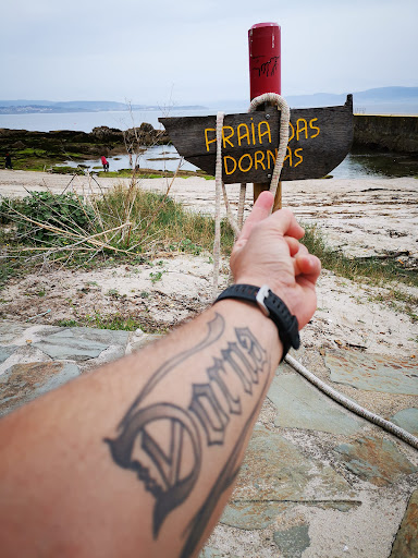 Encontramos la Praia das Dornas, justo al lado del embarcadero del puerto de Ons. Este pequeño arenal es un buen lugar para esperar la llegada de las embarcaciones que nos retornarán al continente, ya que se encuentra a unos cien metros del lugar donde atracan los barcos. Es la única playa de la isla en la que veremos edificaciones...
