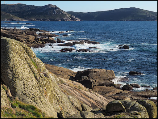 We find the Punta da Barca lighthouse, which marks the entrance to the Ría de Camariñas, on the Costa da Morte. From this cape you can see the other side of the estuary, the cape and the Cabo Vilán lighthouse. At this point, the waves tend to bite hard on the rock making it a spectacular place. Next to it is the Sanctuary of Virxe da Barca. It can be reached by a very pleasant walk to the town of Muxía. Highly recommended.