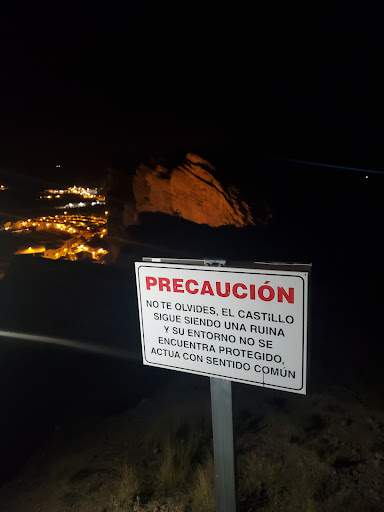 Lo más relevante de este castillo es su complicado acceso adaptado al relieve existente y sacándole todo su potencial defensivo. Para acceder a la entrada había que cruzar el largo muro de unos 30 metros que por el oeste se une al castillo y discurre paralelo al precipicio (actualmente es el acceso a la estatua de la Virgen). Había que recorrer este acceso muy cerca del borde, por un terraplén ahora desaparecido, hasta llegar a un corredor en ángulo de 90 grados que sigue junto al lateral de la muralla. Dicho corredor conduce a la torre circular de la esquina noroeste, a través de la cual había que flanquear dos puertas dispuestas también en ángulo recto. Un tipico acceso en codo pero que en este caso es doble. Después de abandonar el castillo, esta entrada quedó inutilizada y se abrió otra en el centro de la muralla norte.