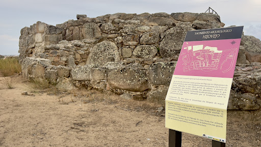 Para que el autoguiado se pueda soportar os escribo algunos detalles de este impresionante castillo Romano. En esta Comarca del río Ortiga se ubican unos treinta y dos recintos tipo torre, formando una retícula de control de los pasos naturales que permiten el acceso a las zonas del interior desde el norte cordobés, incluyendo los vados del río Zújar. Todos ellos se erigen en llano o, en todo caso, sobre diminutas lomas o berrocales. El conjunto pertenece a un monumento de transición a la plena romanización de la Serena (finales del siglo II a.C., hasta finales del siglo I d.C.), aportando materiales de Hierro II junto a otros íberorromanos o plenamente romanos. Estructuralmente, Hijovejo responde al modelo de recinto-torre, planta regular, con recinto concéntrico exterior. Su alzado consta de aparejos ciclópeos en los zócalos, siendo el resto del alzado (que no se conserva), de tapial y adobe. Tampoco se conservan las cubiertas que posiblemente consistieron en un sistema de vigas de madera que soportarían un sencillo entramado. Su interior se segmenta en pequeños habitáculos para la vigilancia y almacenamiento. Todas las estancias se adosan a la cara interna de la muralla, se abren a un área de tránsito en la que lo hallado apunta a que en ésta existiese un sistema de comunicaciones basado en el fuego. Por tanto, es posible que este recinto tuviera una funcionalidad ambivalente: Almacén y, a la par, torre de señales. En el exterior existe una gran construcción en forma de rampa, de la que actualmente no puede especificarse su función. A la estructura original de la torre se adosa con posterioridad una explotación agrícola romana. Hijovejo es el más espectacular y el mejor conservado de todos los recintos-torre, con posibilidades de poder ser restituido en una porción considerable de su alzado. Por otra parte, es un yacimiento óptimamente comunicado, frontero a una carretera comarcal, desde la cual se ven perfectamente las estructuras, y a escasos kilómetros de Quintana de la Serena. Amenazado de forma directa e indirecta por un proceso de urbanización descontrolado de casas de campo de recreo, el yacimiento puede verse abocado a ser utilizado como agente de disfrute socio-cultural, cuando no a ser degradado progresivamente hasta su destrucción. Su singularidad y las posibilidades que ofrece este yacimiento para explicar el proceso romanizador de la Serena y la pervivencia de las viejas rutas naturales hacia el cambio de era, como también para imbricarlo en una ruta cultural con base arqueológica que comienza a perfilarse: Hornachos (castillo/pinturas esquemáticas), Zalamea (castillo y dystilo sepulcral), santuario orientalizante de Cancho Roano, Magacela (fortaleza y pinturas esquemáticas/dolmen), Campanario (conjunto sacro-funerario orientalizante), Medellín (castillo y teatro romano), Don Benito (villa romana de la «Majona»), que muestra la gran riqueza portohistórica e histórica de la comarca. así que animo a Junta de extramadura a dotarle de una recostrucción o mejora para poder seguir mjorando en la riqueza de...