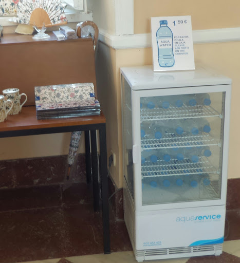 Most serious of all, though, is that there is no cafe. We were directed only to cafés outside the palace and to the pathetic fridge that I've photographed at the side of the gift shop - of course they've found room for a gift shop! Going out to a cafe involves quite a walk and getting back through about twenty minutes worth of security and ticketing so we bought bottles of water and sat in a corridor by the toilets.