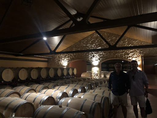 BODEGAS LÓPEZ CRISTÓBAL (Roa): Una hermosa bodega familiar, en la cercanía de Roa (Burgos), que tenía muchas ganas de visitar y que, como ya suponía, no defrauda, ni la visita, ni sus dueños (sobre todo GALO, que ha sido el mejor anfitrión que podíamos tener), ni tampoco sus vinos, que aunque algunos ya los conocía, otros me han sorprendido muy gratamente, no solo a mí, sino también al resto del grupo. Recorrimos con Galo, (dueño y actual Gerente de la Bodega), las diferentes estancias de la misma, haciendo de alguna manera el mismo recorrido que realiza la uva desde que llega a la bodega en pequeñas cajas de fruta, hasta que sale ya convertida en los diferentes vinos que aquí elaboran con un toque muy personal. Independientemente del trabajo que se esté haciendo en la bodega, las salas están cuidadosamente limpias y la tranquilidad impera en todas ellas, además del silencio, (que solo rompe el traqueteo del cristal cuando la embotelladora está funcionando), la buena temperatura y humedad, así como la oscuridad y los buenos aromas de esa magnífica Sala de Barricas, donde reposan cerca de 800 barricas de roble francés y americano de 225, 300 y 500 litros y también algún Fudre para elaboraciones especiales. Los depósitos de acero inoxidable de las Salas de Fermentación, llaman la atención porque no son demasiado grandes, ya que Galo suele elaborar los vinos por parcela y no le gusta mezclarlas. Hay por lo menos 3 o 4 salas con depósitos y los hay de conformaciones diferentes (verticales y horizontales, de mayor y menor volumen, cerrados y alguno abierto, etc..), equipados con la tecnología más moderna para facilitar los trabajos de elaboración. Galo nos contó un poco la historia de la bodega, que pasó desde los tiempos de su abuelo Santiago (ganadero y agricultor), luego su padre, Santiago López, que empezó con la viticultura, hasta que deciden (junto con su madre Lola Cristóbal), en 1994 vinificar ya su propia uva y fundar la bodega. Desde 1998, Galo López Cristóbal, es el Gerente de la bodega y con él al frente se consigue consolidar este proyecto. Eso sí, manteniendo una ‘Máxima’ que siempre tuvo su padre de establecer un “Techo de Cristal y no sobrepasarlo nunca para que la Cantidad no perjudique la Calidad, ni se pueda perder el control del negocio”. Quiero aprovechar también para dar las gracias a Isidro (Califa), un operario de la bodega que lleva aquí más de 36 años y está siempre atendiendo el viñedo y conoce todos sus secretos. Él me contó muchas cosas de su trabajo, de como se forjaron los inicios de esta bodega, de las variedades que cultivan de forma tan natural y también sobre sus viajes por carretera, junto con su esposa, en su Caravana y lo bien que se lo pasan recorriendo España y también otros países europeos…. ¡¡¡¡¡QUE BUENA VISITA A ESTA GRAN BODEGA Y QUE BUENOS LOS VINOS QUE DEGUSTAMOS...