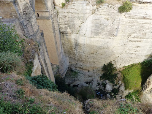 The river flowing through the Ronda Tajo gorge is the Río Guadalevín. My photos show an unusual view of it: in flood! Another photo shows it in springtime, just as it leaves the gorge, flowing through a field of poppies.