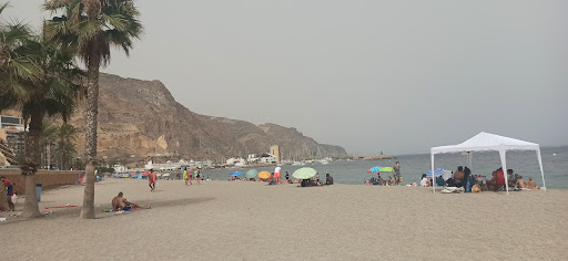 Read moreNo es de las mejores playas que conozco pero para ser urbana está bien aunque depende mucho del estado del mar. Con oleaje, la mala calidad de la arena tipo grava utilizada para reponer la que se lleva los temporales, hace que el agua esté sucia. Con el mar en calma, la claridad del agua deja ver el fondo de arena y las zonas de abundante vegetación marítima con algún que otro banco de peces. El Ayuntamiento instala en verano pasarelas de madera y papeleras, acondiciona las duchas y limpia diariamente. Junto al puerto, crea una zona de movilidad reducida con personal auxiliar. Alquiler de hamacas y sombrillas (unos 4 €), deportes náuticos (kajak, paddle surf, vela, etc.), y varios chiringuitos de madera con tamaño y distribución similar, ofrecen sus servicios a lo largo de los más de 2 kms de playa. Bares y restaurantes desde el puerto deportivo y hasta Villa África, completan la oferta junto con dos hoteles (Portomago 3* y Playadulce 4*). La anchura es irregular con dos zonas muy amplias (puerto y espigón) y una muy estrecha con rocas (CC 501). Es fácil clavar la sombrilla y te cubre rápido sin necesidad de dar muchos pasos desde la orilla. Se puede aparcar en el paseo a ambos lados de la calzada (en línea). Gratuito. Bastante concurrida pero...