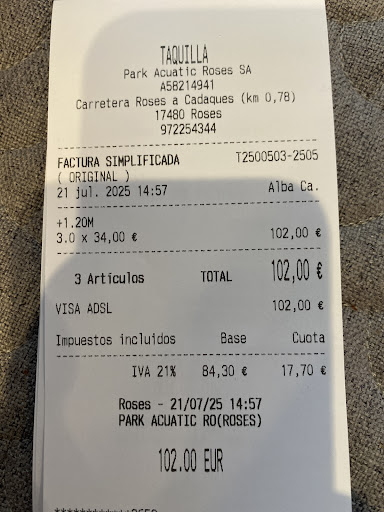 In general this is a good place if you come and stay in the pool. Next time i will take smth with me and go to car to have a bite. They don't let you in with biscuits or smth like this (because I don't want to eat their food, my daughter neither). Everywhere queues. So be ready to stay in the sun 30 mins. Don't forget your sun cream, esp for children. If you like to make videos take a waterproof pouch for your mobile phone. To avoid entrance queue buy tickets online. I don't know why the website was not working but i could not add 4 tickets to my basket. You need a desktop website. Mobile (Android) does not work....