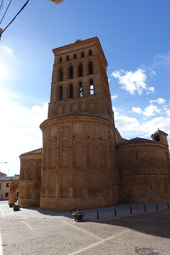 Magnífica la iglesia románico mudéjar de San Lorenzo, se encuentra en el centro del pueblo, en lo que era el barrio de la morería, y es una de las iglesias más vistosas y completas del arte mudéjar. Está declarada Monumento Nacional desde 1931, y es parte integrante de varias rutas jacobeas del Camino de Santiago. Data de comienzos del siglo XIII. De grandes dimensiones, su estructura es similar a San Tirso pero su material de construcción es plenamente de ladrillo. Es uno de los mejores ejemplos de iglesia mudéjar de carácter híbrido, con elementos románicos, góticos y musulmanes. La cabecera tiene tres ábsides con bellas arquerías de herradura y alfiz, con frisos de ladrillos en esquinilla. Tiene planta basilical, con tres naves separadas por arcos apuntados; la cabecera está formada por tres capillas de ábsides escalonados. Sobre el presbiterio se levanta la torre de planta cuadrada, que tiene cuatro cuerpos decrecientes en altura y nos contaron que es además un excelente palomar....