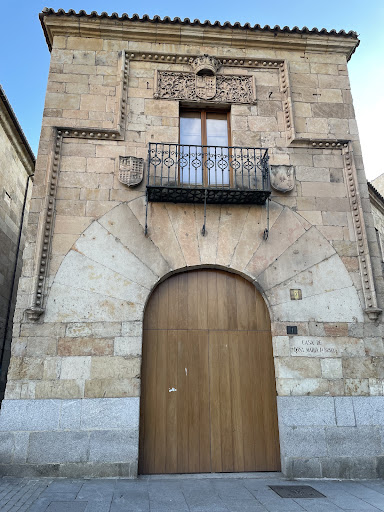 La Casa de Doña María la Brava perteneció a María Rodríguez de Monroy, conocida como la Brava, por el sangriento episodio en el que se vio envuelta cuando ejecutó y decapitó a los asesinos de sus hijos, miembros de un bando rival. Según la Leyenda, en el S.XV Salamanca estaba dividida en dos bandos que continuamente tenían cruentos enfrentamientos: el de San Benito y el de Santo Tomé. En una de esas luchas, los dos hijos de María de Monroy, del Bando de Santo Tomé, fueron asesinados. Cuenta la leyenda que Doña María persiguió a los asesinos hasta Portugal, donde los mató y decapitó, volviendo a Salamanca con las cabezas, para arrojarlas a la tumba de sus hijos. Desde entonces fue conocida como María "la Brava". El edificio data del siglo XV y está ubicado en la Plaza de los Bandos, llamada así por los bandos de nobles enemigos que se enfrentaron durante décadas por el control de la ciudad. Eran el Bando de San Benito y el de Santo Tomé, al que pertenecía Doña María. Su sobria fachada está adornada por tres escudos: el de los Enríquez, el de los Monroy y el de...