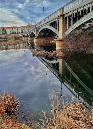 Read moreUn lugar ya emblemático y que de alguna manera forma parte del propio río Tormes desde el año 1913. Se inauguró el 23 de octubre de 1913, una desapacible mañana otoñal en la que El Adelanto de la época publicaba: "El puente adornado con guirnaldas y banderas, ofrecía un hermoso aspecto. La entrada se cerraba por una cinta con los colores nacionales". El puente se iluminó en 1998, proporcionando una visión nocturna artística y que forma parte de innumerables fotografías. Con más de 100 años, y algo oxidado, este puente temblón fue declarado, el 14 de enero de 2016, Bien de Interés Cultural por la Junta de...
