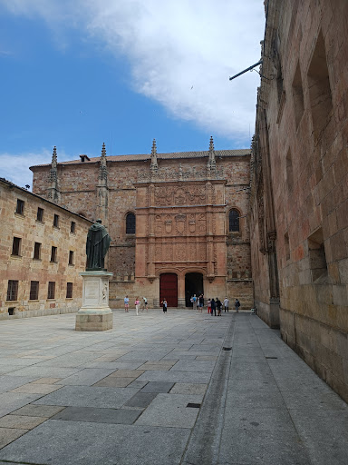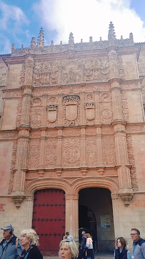 Ubicada en la ciudad de Salamanca, su edificio principal es una joya arquitectónica del estilo plateresco, reconocido por su elaborada ornamentación en piedra. La fachada, tallada con minucioso detalle, es uno de los puntos más icónicos, donde destaca un elemento peculiar: una pequeña rana posada sobre una calavera. Un símbolo que ha alimentado leyendas y tradiciones, convirtiéndose en un reto para estudiantes y turistas, quienes creen que encontrarla sin ayuda trae buena suerte.