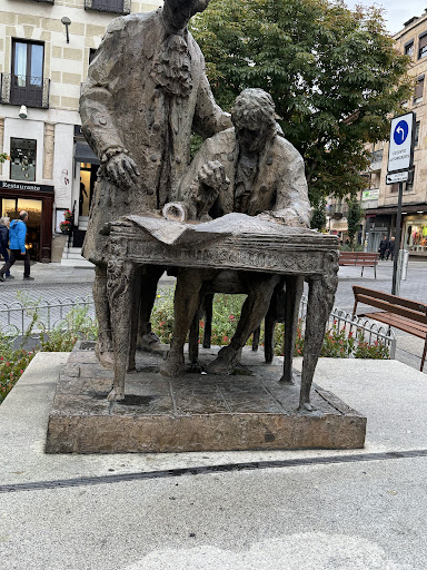 It is the work of Spanish sculptor Fernando Mayoral and and depicts the two fellows going over plans or architectural schematics for nearby Plaza Mayor. The monument was inaugurated in 2005 on the 250th anniversary of the completion of Plaza Mayor...