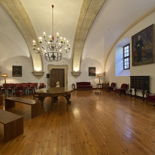 Accedemos al recibidor y a mano derecha entramos en una magnífica sala de uso académico (para claustros y reuniones) donde nos recibe el guía y vemos un vídeo de 10 minutos que nos acerca a la figura de Unamuno.
