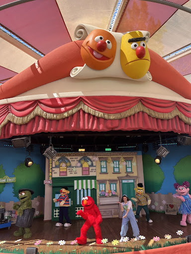 Espectáculo de Sesamo Aventura en Port Aventura. En él salen Como, Epi, blas, elmo, Triki y un animador de la fiesta. A ver............el espectáculo está muy bien, es animado, tiene ritmo y cada personaje canta y baila como protagonista una canción y todo ello amenizado por un presentador muy simpático y agradable. Peeeero, si lo comparamos con espectáculos de años anteriores, el de este año diria que se queda un pelín por debajo. No lo desmerezco ya que este espectáculo funciona muy bien y la gente (sobretodo los niños) interactuan y se lo pasan genial. Pero sigo diciendo que otros años, ha estado un pelín mejor, por los bailes, las coreografias y por un todo en general. A pesar de esto, sigue...