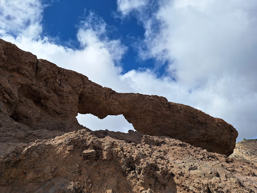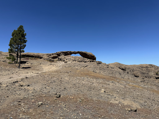 Stunning views from the arch! I would even say it’s more interesting than Roque Nublo. We parked next to the camping area called Bailico. The path from there is not clear yet but just go next to the road and you will find a directions sign with the arrow. Then follow it through old lava flows. The hike took us about 20-30 minutes. Regular sneakers will be fine but be careful on quite rocky path. From the viewpoint you can see clearly Roque Nublo and Teide volcano on Tenerife (if you’re lucky due to clouds). The best thing is this is not a popular destination so we’ve been alone there enjoying silence and birds. One more thing - the echo on the top is absolutely...