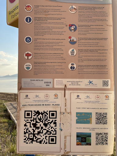 Read morePlaya Antillas. Es una pequeña playa semiurbana, orientada al Oeste con vistas a la Manga y a la Isla del Barón, poca profundidad, arena gruesa y la calma de las aguas de La Manga. Buen acceso desde la carretera en vehículo por la Gran Vía, kilómetros 8,5 a 9. Un buen lugar para observar...