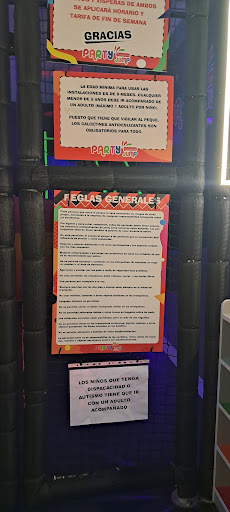 Read moreLas normas de este lugar son completamente injustas y absurdas. Nos traemos calcetines de casa aptos para saltar y nos dicen que tienen que ser fluorescentes. La razón, nos dice la chica, es que sí se caen en la piscina de cosas de goma espuma con las luces apagadas, es útil para encontrarlos...Después, pedimos que se quedasen 1h y media, y nos dice que no puede ser, que sólo se hacen tramos de media hora a partir de la primera hora para niños menores de 5 años. Si tu hijo es algo mayor, se aguanta con 1h que quizás le sepa a poco, o con 2h y acaba reventado, o te lo llevas antes y no amortizas lo pagado. Cuando ya hemos pagado, le digo a la chica que vamos a recoger a los niños a las 15.05h y me dice que no, que hay que recogerlos en punto, habiendo realmente entrado a las 15.07h....Otra cosa que no se cumple, pues no serían 2h. Para terminar, decir que la selección musical para un lugar como ése no es acorde al sitio, pues no es animada en absoluto, más bien...