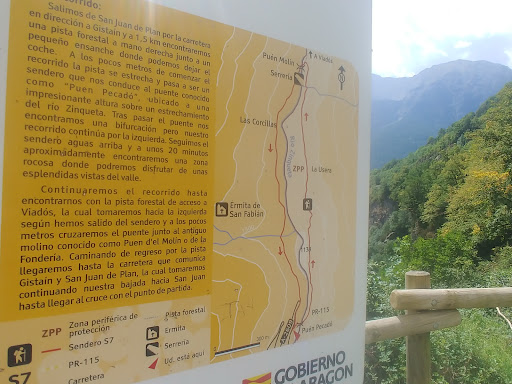 Read moreUn sendero imprescindible en el valle de Chistau. Válido para cualquier persona e incluso para hacerlo con niños. Especialmente recomendado en verano cuando aprieta el calor, ya que tiene mucha sombra y al ir paralelo al río es muy fresco. La vuelta se puede hacer por pista y se tarda bastante menos en hacerla. Los carteles informativos son todo un acierto para aprender de la fauna y la...