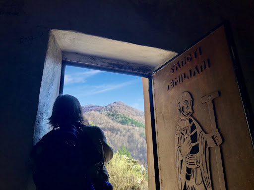 San Millán estuvo buscando un espacio donde retirarse para vivir. Entre la Demanda y San Lorenzo encontró ese lugar: la Cueva del Santo. Llegas a los Monasterios de Yuso y Suso, continuas la carretera hasta el poblado del Lugar del Río, y algo más, hasta el área recreativa de Urre. Allí puedes dejar el coche y andar el camino que te indica la propaganda. Treinta o cuarenta minutos por un buen camino, disfrutando sin agobio del paisaje. Es apto para todas las edades. Llegas a este lugar donde el santo se retiró. Y seguramente que no...