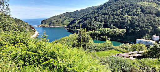 Justo al lado, a mano izquierda, está el inicio de la ruta de montaña del tramo del camino de Talaia que va desde Pasajes San Pedro hasta San Sebastián (termina en la calle Zemoria, aunque luego puedes seguir caminando por el paseo de la Zurriola, paseo de Salamanca, Paseo Nuevo, puerto de San Sebastián, y así hasta llegar al ayuntamiento de la capital). Hasta ese punto el camino es asfaltado (carretera cerrada al tráfico).