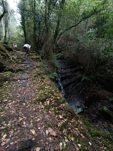 Llega a San Tirso a través de la 🚗N-640, y toma el primer desvío a la derecha dirección Salcido. Debes subir unos 3km, siendo uno de los tramos por pista forestal 🌳asfaltada.