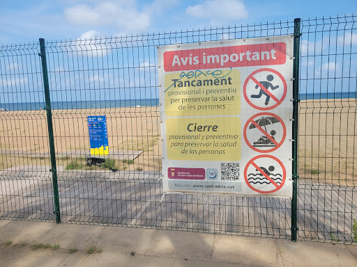 Read moreEstuvimos en Sant Adrià hace una semana. La verdad es que durante la mañana el sitio es tranquilo y el agua está buena y limpia. Problemas: las familias domingueras con el reggeton todo el día o el típico listo que se pone a volar una cometa gigante con la playa llena de gente y casi sin control. No tuvimos problemas de aparcamiento ni vimos cosas raras del tipo robo. Eso sí, el "serveshabier"...